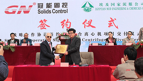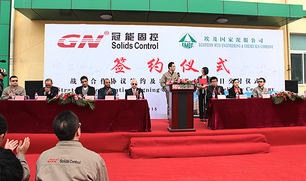 2015年3月12日,冠能固控與埃及國家泥服公司在中國北京冠能公司總部簽署戰(zhàn)略合作協(xié)議,為此冠能固控舉辦了盛大了簽約儀式,儀式也包括了一大批離心機的成功交付。