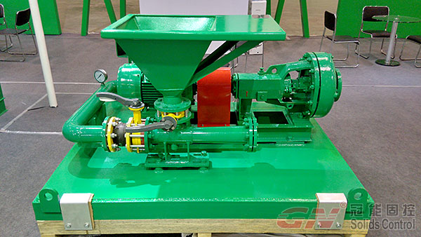 本次展會主要展出了120m³/h處理量的泥漿回收系統(tǒng)及配套的射流混漿系統(tǒng),主要配置了一臺GNZY753E-Y1S型篩泥一體機,雙層篩網(wǎng)設計,面積達到2.225m³,可分離固相粒度40微米,旋流器采用高質(zhì)量聚氨酯材質(zhì),耐磨,使用壽命長,振動電機采用國際意大利OLI品牌或者美國馬丁品牌,篩箱底框采用不銹鋼材質(zhì),振動強度達到7.1G(可調(diào)),并配有GNSB6×5A(37KW)離心泵為除泥供漿泵,采用機械密封,使用壽命長并便于維修。整套系統(tǒng)撬裝設計,移動便捷,使用方便。