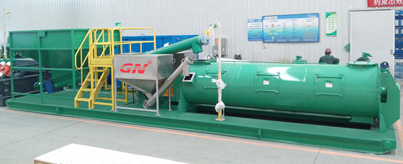 1、鉆屑儲(chǔ)料漏斗接收待處理的鉆屑和泥漿廢棄物,通過螺旋送料機(jī)按照預(yù)先設(shè)定的輸送量輸送到固化攪拌機(jī)中去。