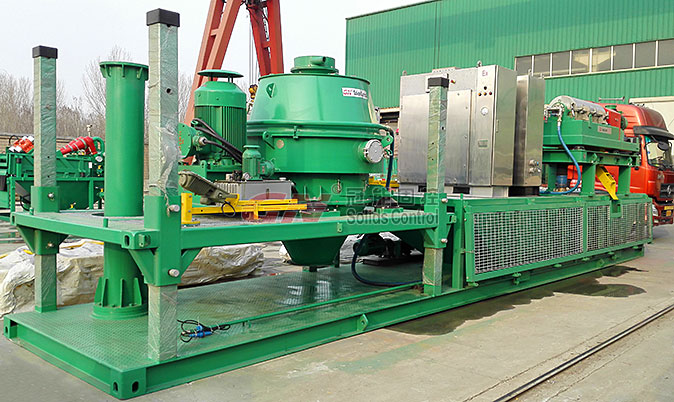 該系統(tǒng)主要包括一臺鉆屑甩干機、一臺用于廢漿處理的高速變頻臥螺離心機,并配有泥漿輸送泵系統(tǒng),該撬裝式設(shè)計,可以完成鉆井廢物屑干燥處理,鉆井液的循環(huán)利用,并且移動方便,適合隨鉆及集中處理工況。